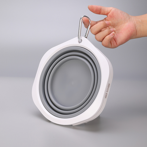จานป้อนอาหารสุนัขและแมว2-in-1พับได้แม่พิมพ์แบบบูรณาการไม่มีขอบพลาสติกสำหรับเดินเดินป่าตั้งแคมป์สีเทา