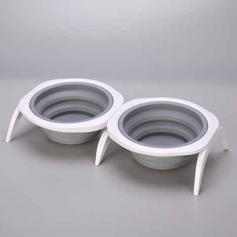 ชามอาหารสุนัข2-in-1แบบพับได้ไม่มีขอบพลาสติกสำหรับเดิน/เดินป่า/ตั้งแคมป์จานป้อนอาหารแมวคู่สีเทา